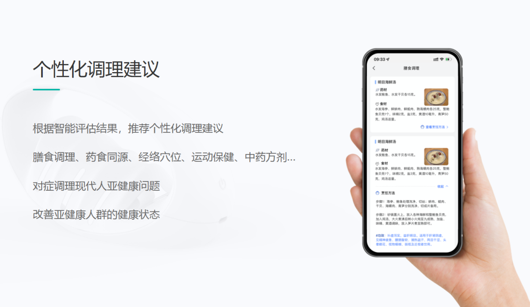 依据人工智能健康评估结果,提供个性化中医调理建议及养生方案。提供饮食宜忌、食疗菜谱、调理穴位、健身功法、药食同源膏方茶饮和中医经方等中医特色干预方法以及针灸、艾灸、推拿等中医养生理疗建议,帮助改善亚健康状态,培养良好的生活习惯和的健康养生意识。